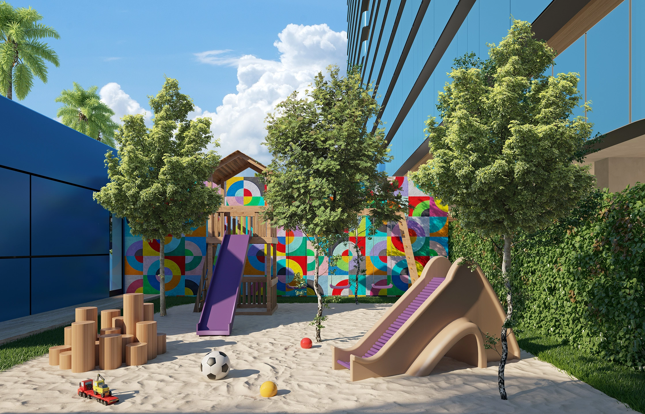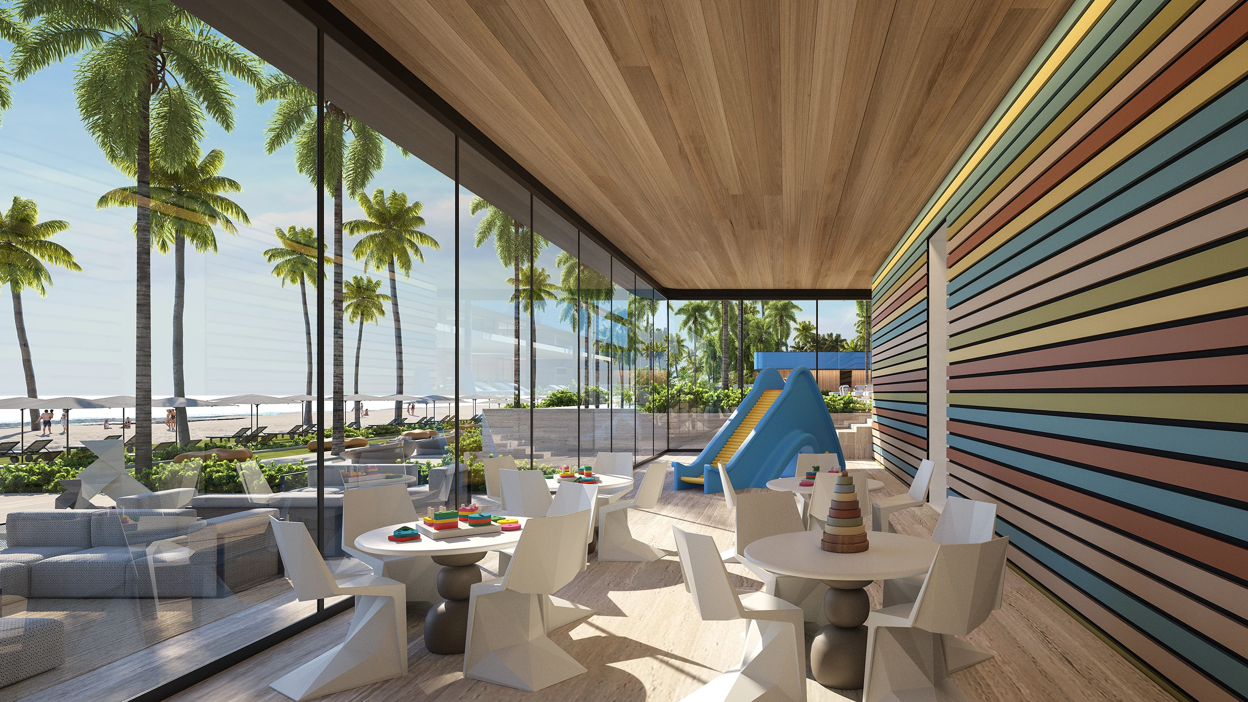 Para los más jóvenes, The Playground es un espacio diseñado con creatividad y exclusividad, donde la diversión se encuentra con la seguridad en un entorno de lujo, estimulando la imaginación en un ambiente distinguido.