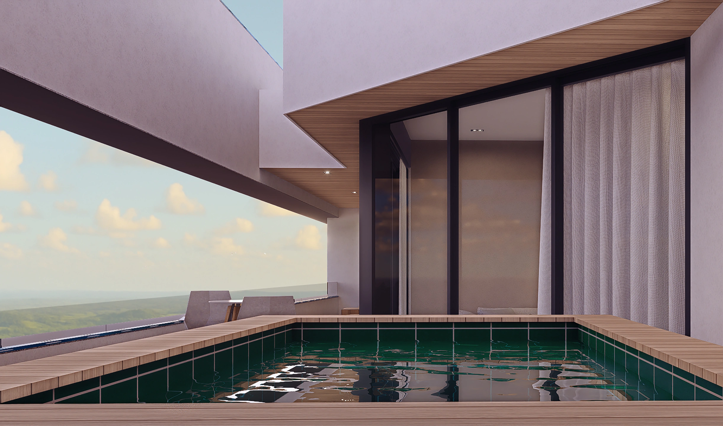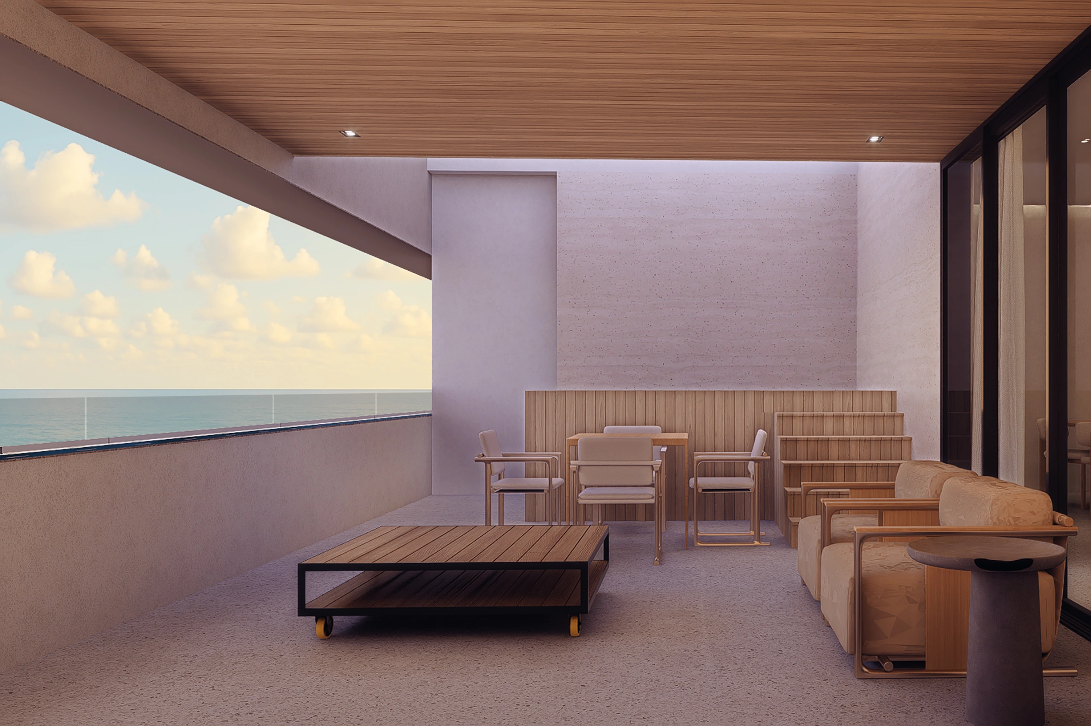 Relájate en The Terrace, un oasis elevado de tranquilidad y estilo, donde las vistas panorámicas y el ambiente sereno se combinan para ofrecer un refugio privado, perfecto para el ocio o el entretenimiento bajo el cielo abierto.