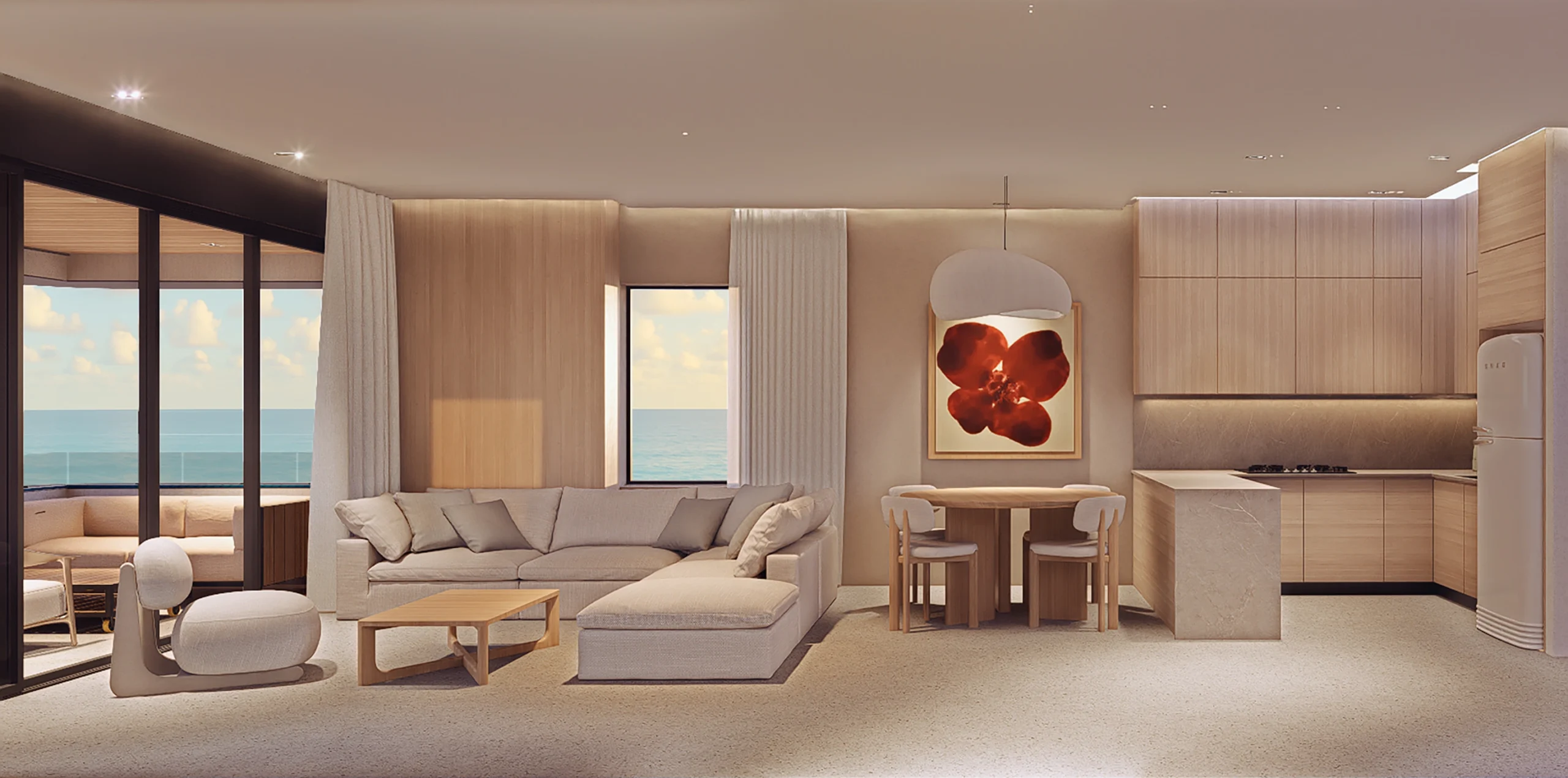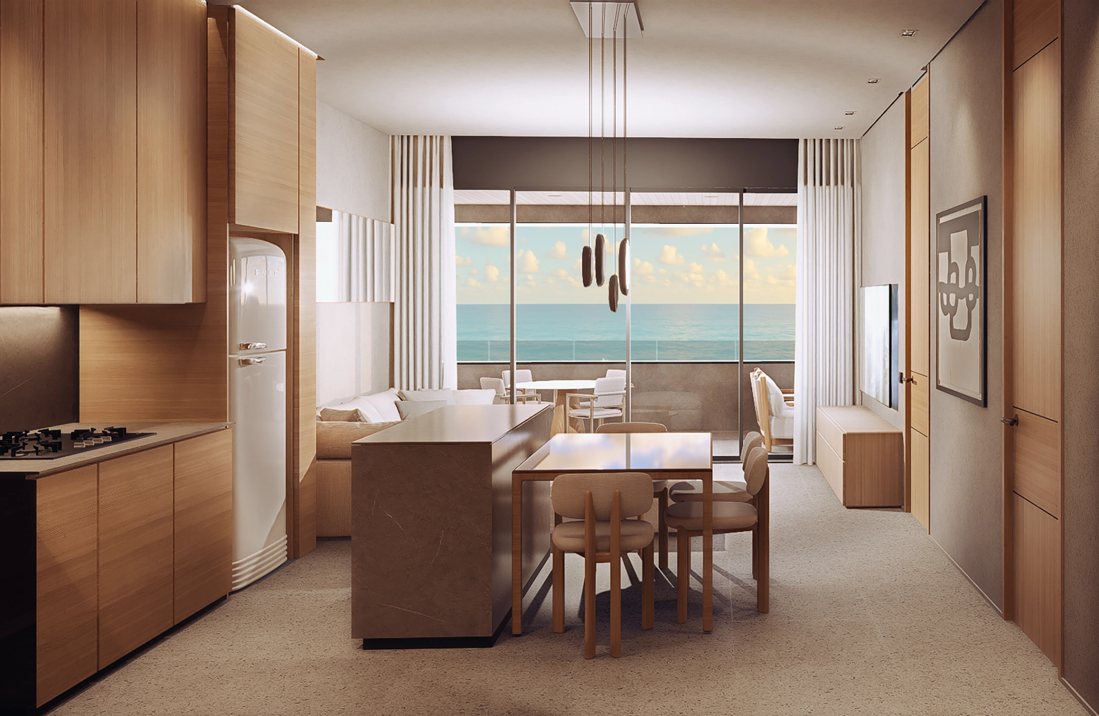 La Social Kitchen es un concepto innovador que fusiona la funcionalidad con el diseño de lujo, creando un espacio interactivo y exclusivo donde los residentes pueden compartir experiencias culinarias, aprender y celebrar en un ambiente sofisticado.